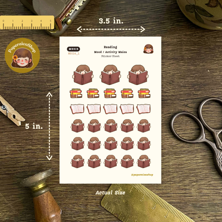 Cute Girl Reading Stickers, Reading Stickers, Book Stickers MS014